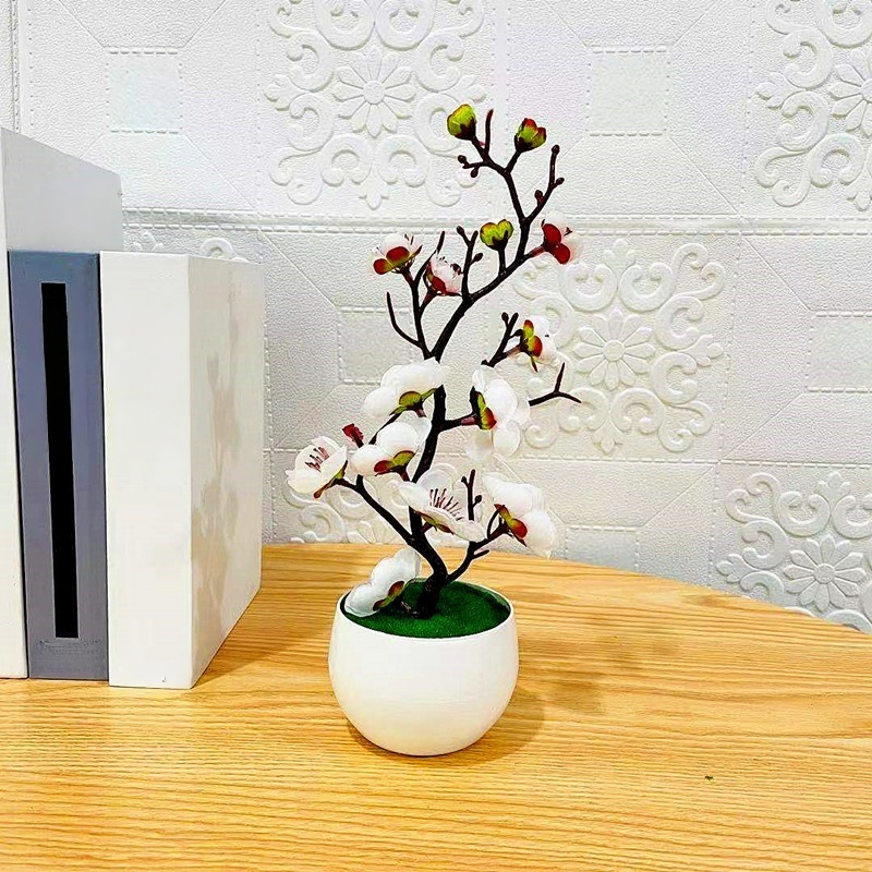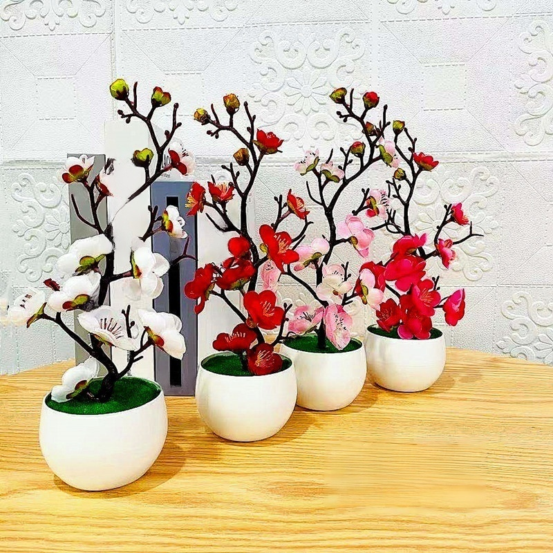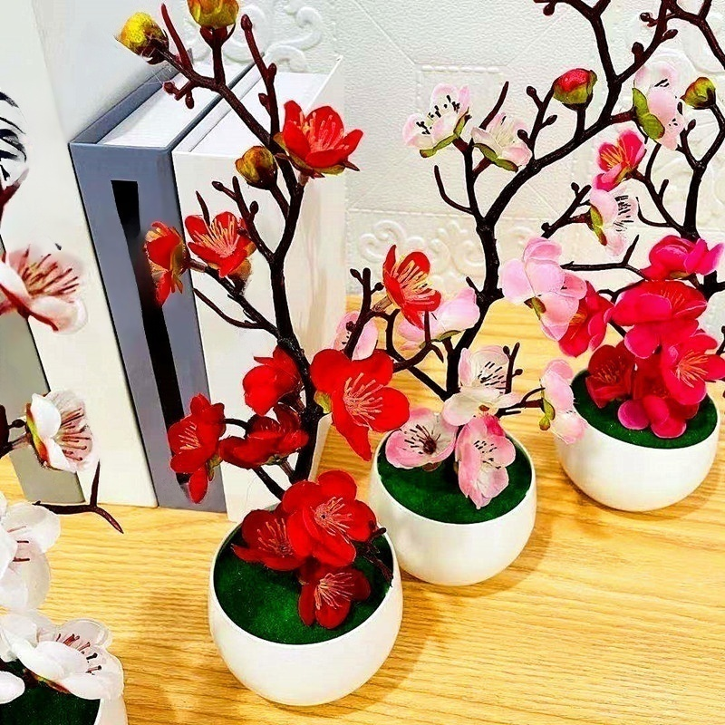 仿真梅花盆栽假花擺設